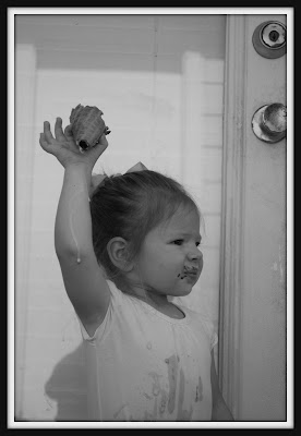 Caroline will be turning 2 in a couple of weeks, so I baked some cupcakes for her to devour. It was a total mess. She used a pan to stand on to reach the cupcakes that were on the counter, which led to a BIG chocolate MESS!!!! There was chocolate everywhere. Chocolate on her face. Chocolate on her clothes. Chocolate in her hair. Chocolate on my windows. Chocolate on my blinds. Chocolate on my wood floors. Chocolate on my carpet. EVERYWHERE!