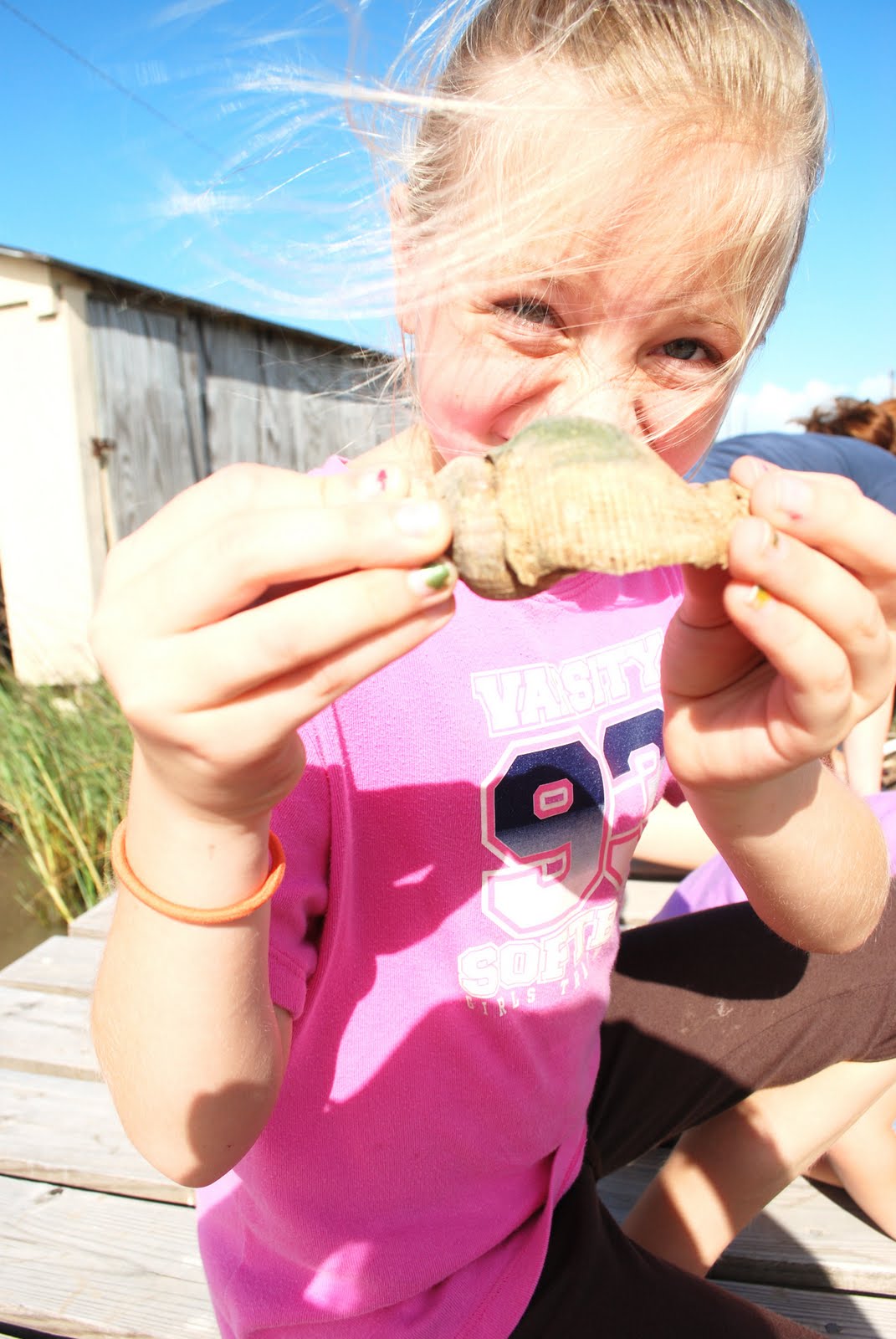 Can you spot the baby crab? The kids went nuts looking under rocks for these things. Sydney and her first shell of the day... Uncle Dane and Caroline setting up the crab traps in hopes to catch a ton of crabs by morning... A long hot day followed by pizza and a salad...